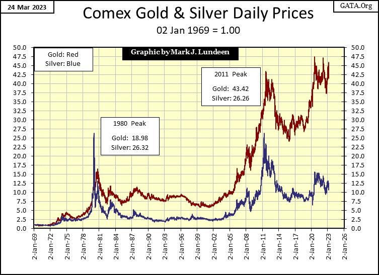 But this week, silver closed with a BEV of -52.48%, meaning silver in March 2023 is selling for 52.48% of what it was in January 1980, forty-three years ago. Besides silver, what else today can be purchased for half of what it cost in 1980? Nothing I’m aware of.