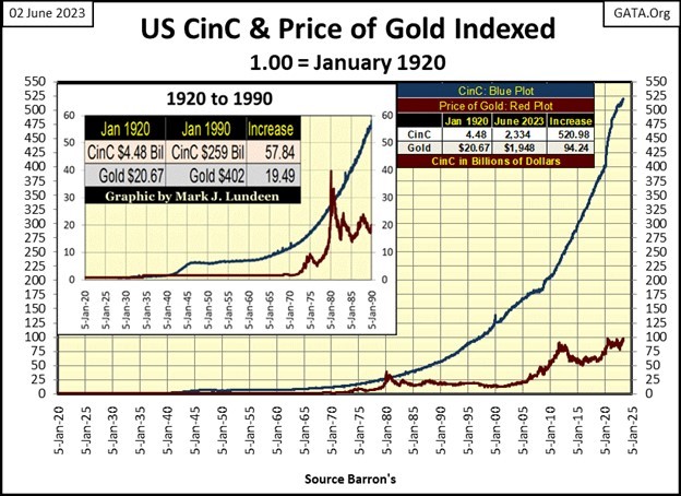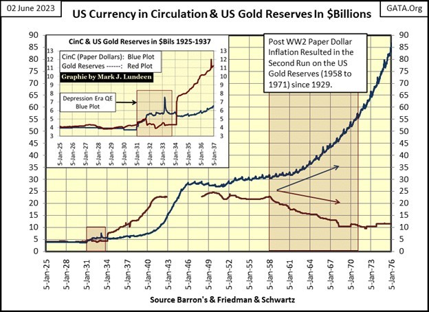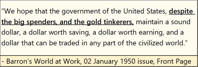 As it was, when the run on America’s gold reserves began in 1958, in response to the decline in the dollar’s gold reserves, CinC (paper dollars-in-circulation) increased significantly, as “the policy makers” over-issued paper dollars for Washington to spend as they damn well pleased. That is why in August 1971, “Nixon closed the gold window.” As seen below, with data issued by the US Government, an published in Barron’s many decades ago, the US Treasury never took the Bretton Woods’ $35 gold peg seriously – never!
